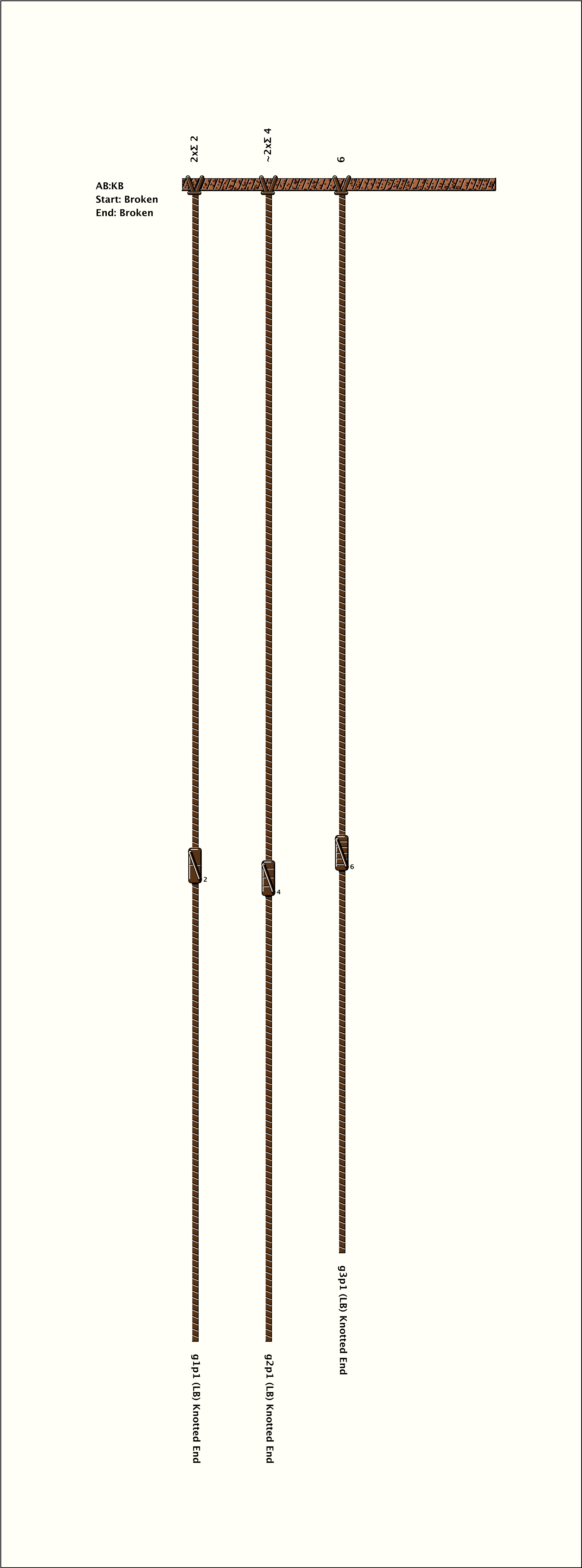 # of Groups & Cords: 3 Groups, 3 Cords - 3p # of Ascher Cord Colors: 2 Similar Khipu: Previous (KH0685) Next (KH0686) Catalog: KH0687 Khipu Notes: Khipu Notes |