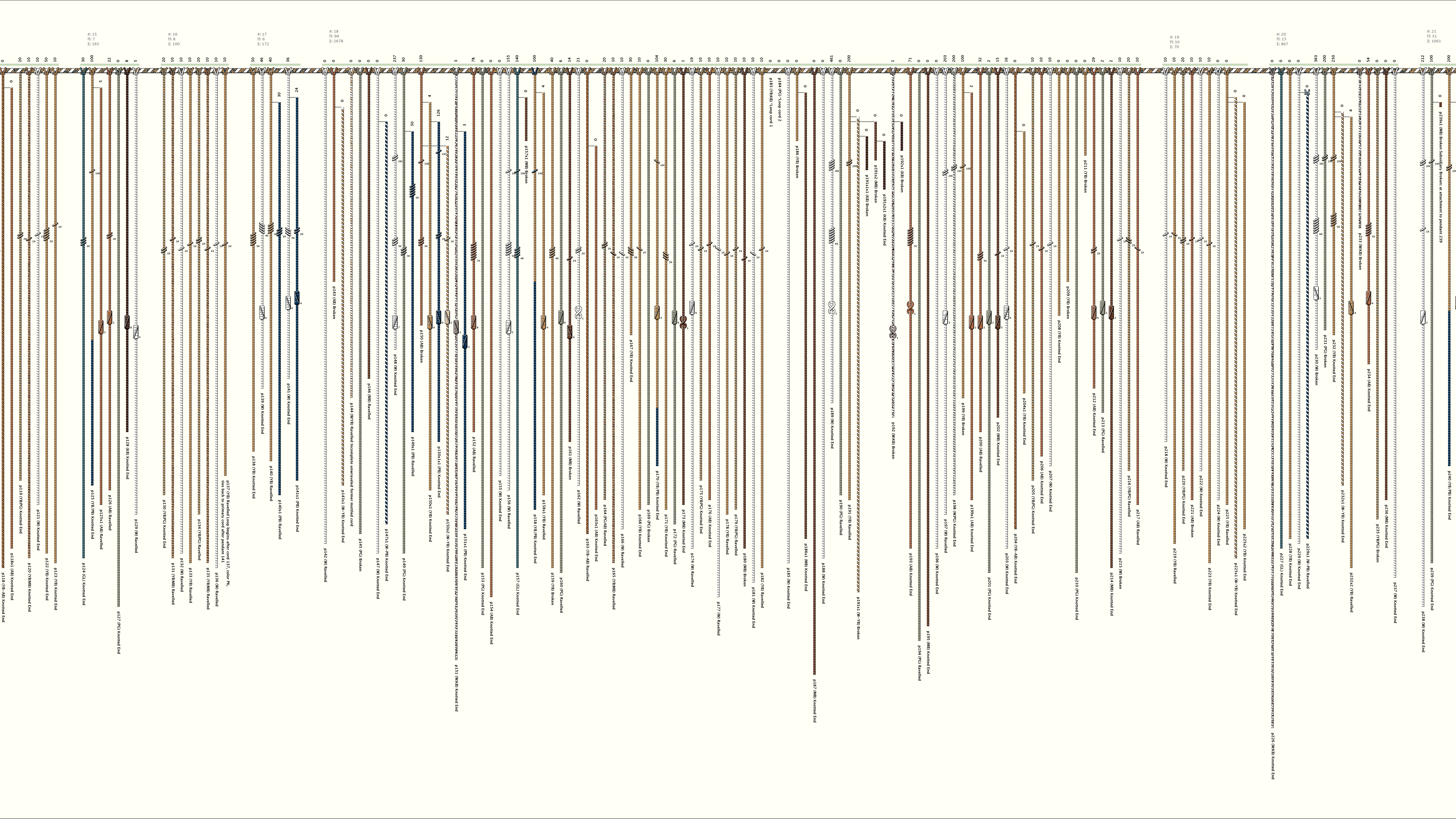 Total Number of Cords: 308 Number of Ascher Cord Colors: 24 Similar Khipu: Previous (UR1091) Next (UR059) Catalog: MM001 Khipu Notes: Khipu Notes |