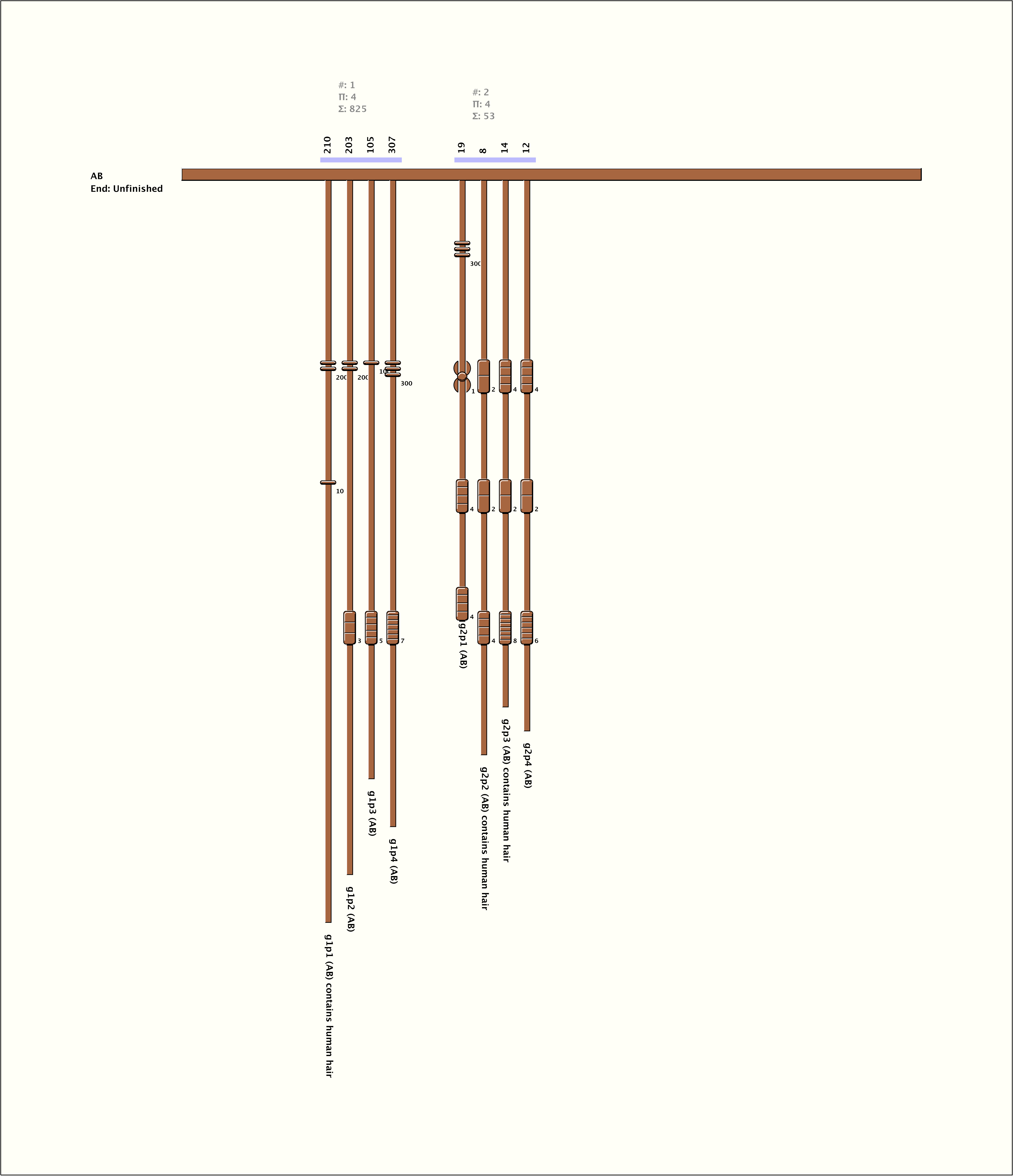 # of Groups & Cords: 2 Groups, 8 Cords - 8p # of Ascher Cord Colors: 1 Similar Khipu: Previous (KH0282) Next (KH0094) Catalog: RA004 Khipu Notes: |