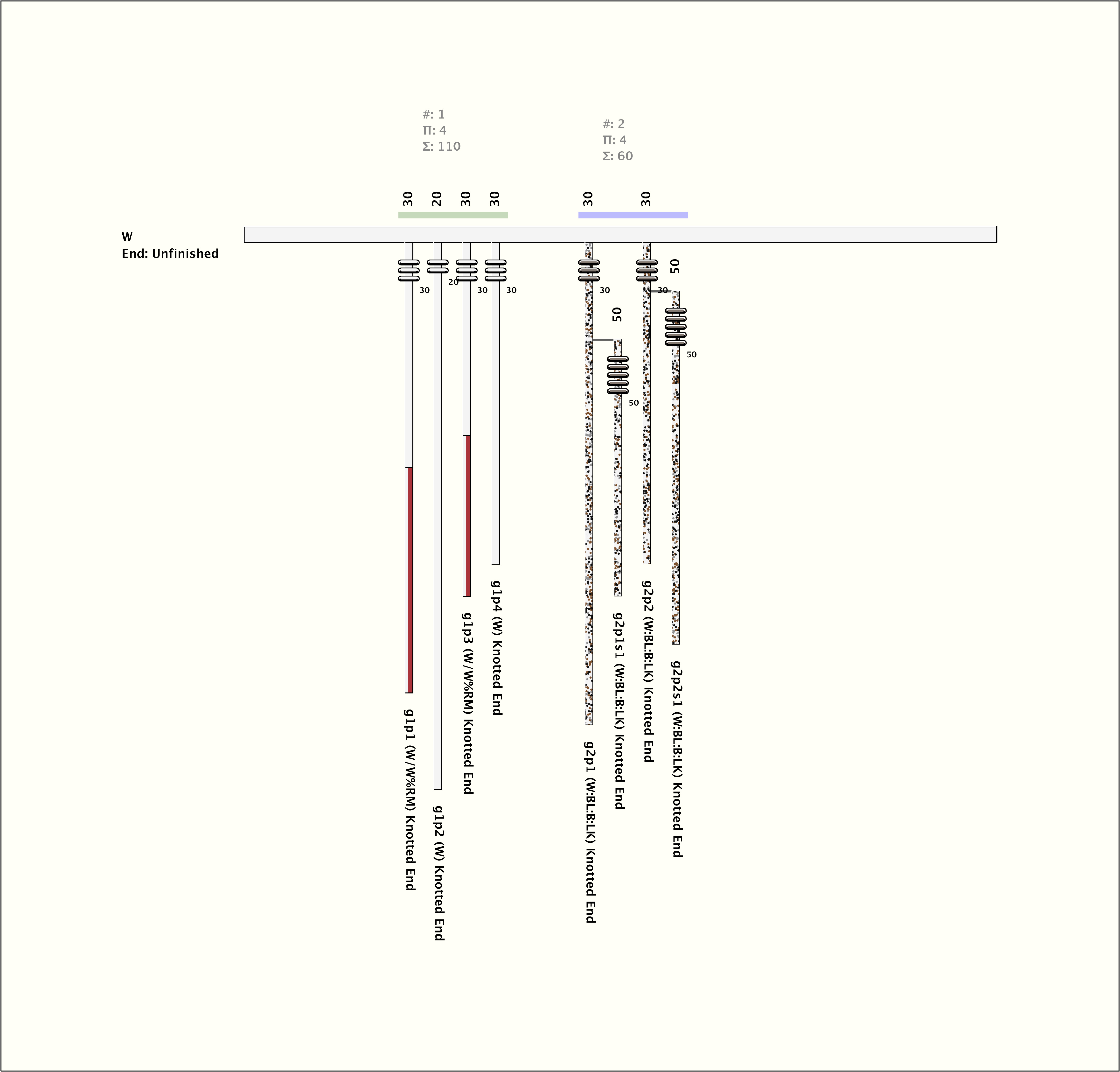 # of Groups & Cords: 2 Groups, 8 Cords - (6p, 2s) # of Ascher Cord Colors: 3 Similar Khipu: Previous (RA007) Next (KH0096) Catalog: RA009 Khipu Notes: |