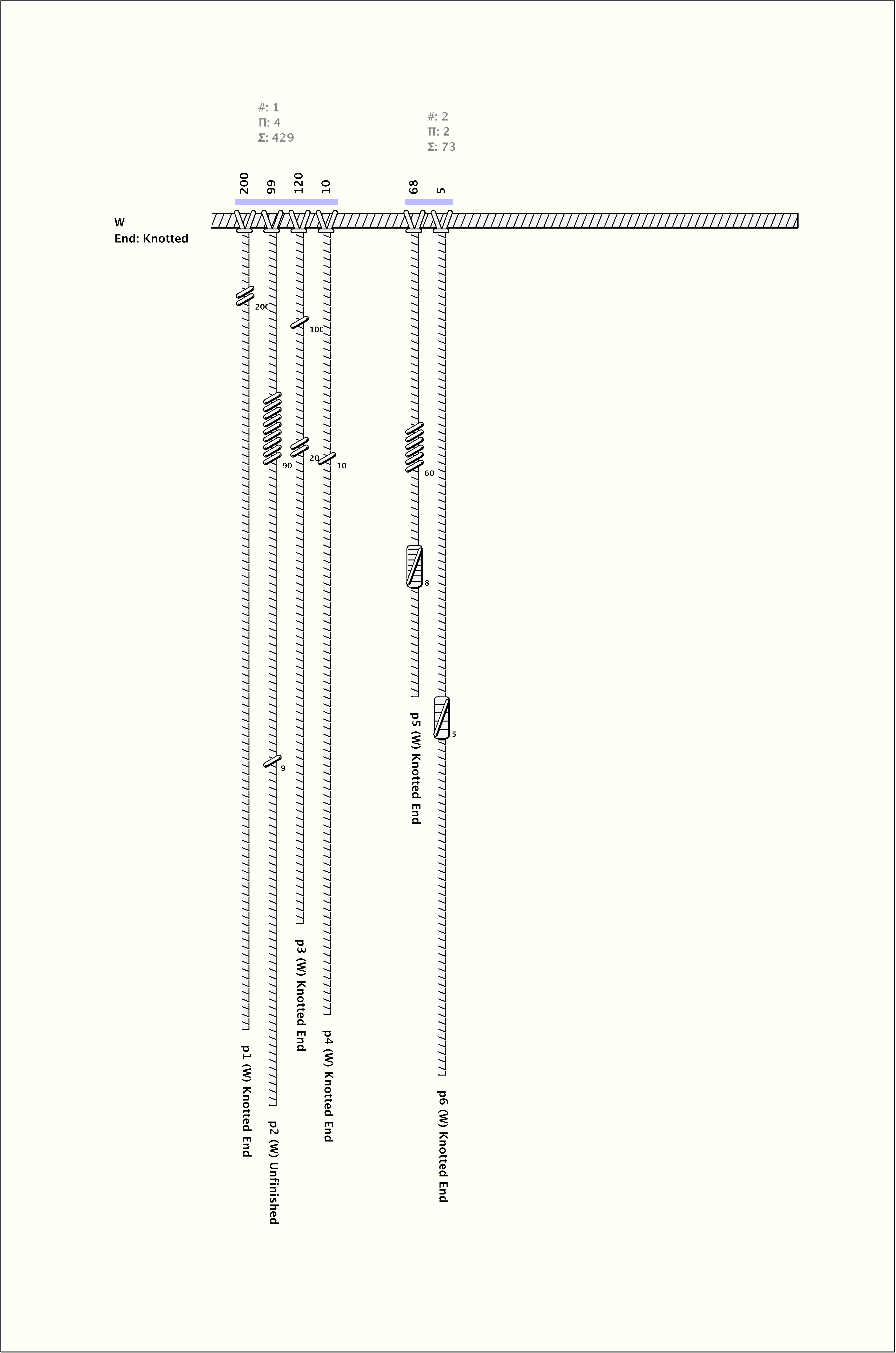 Total Number of Cords: 6 Number of Ascher Cord Colors: 1 Similar Khipu: Previous (HP021) Next (HP001) Catalog: UR008 Khipu Notes: |