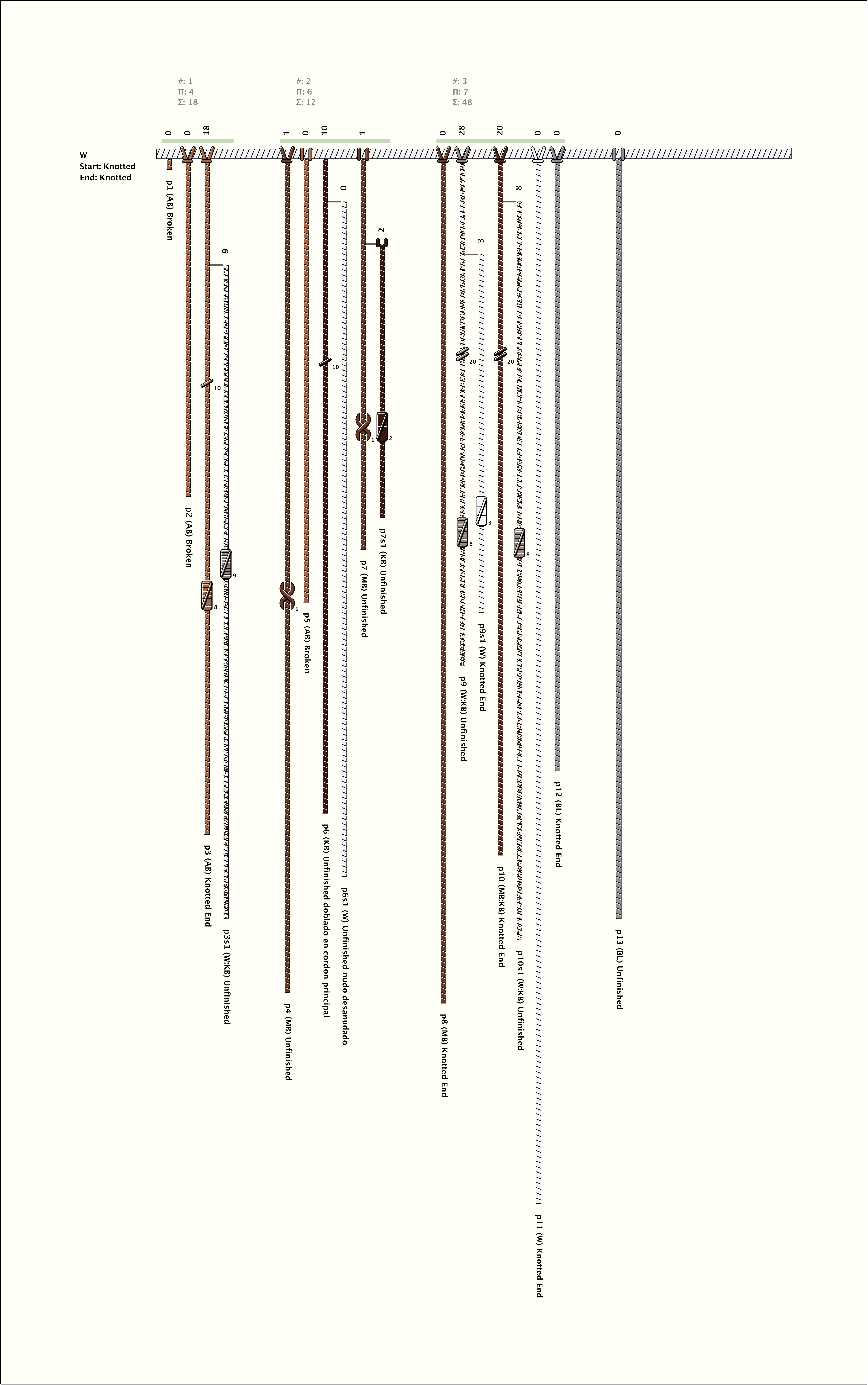 Total Number of Cords: 18 Number of Ascher Cord Colors: 7 Similar Khipu: Previous (QU019) Next (HP057) Catalog: UR019 Khipu Notes: |