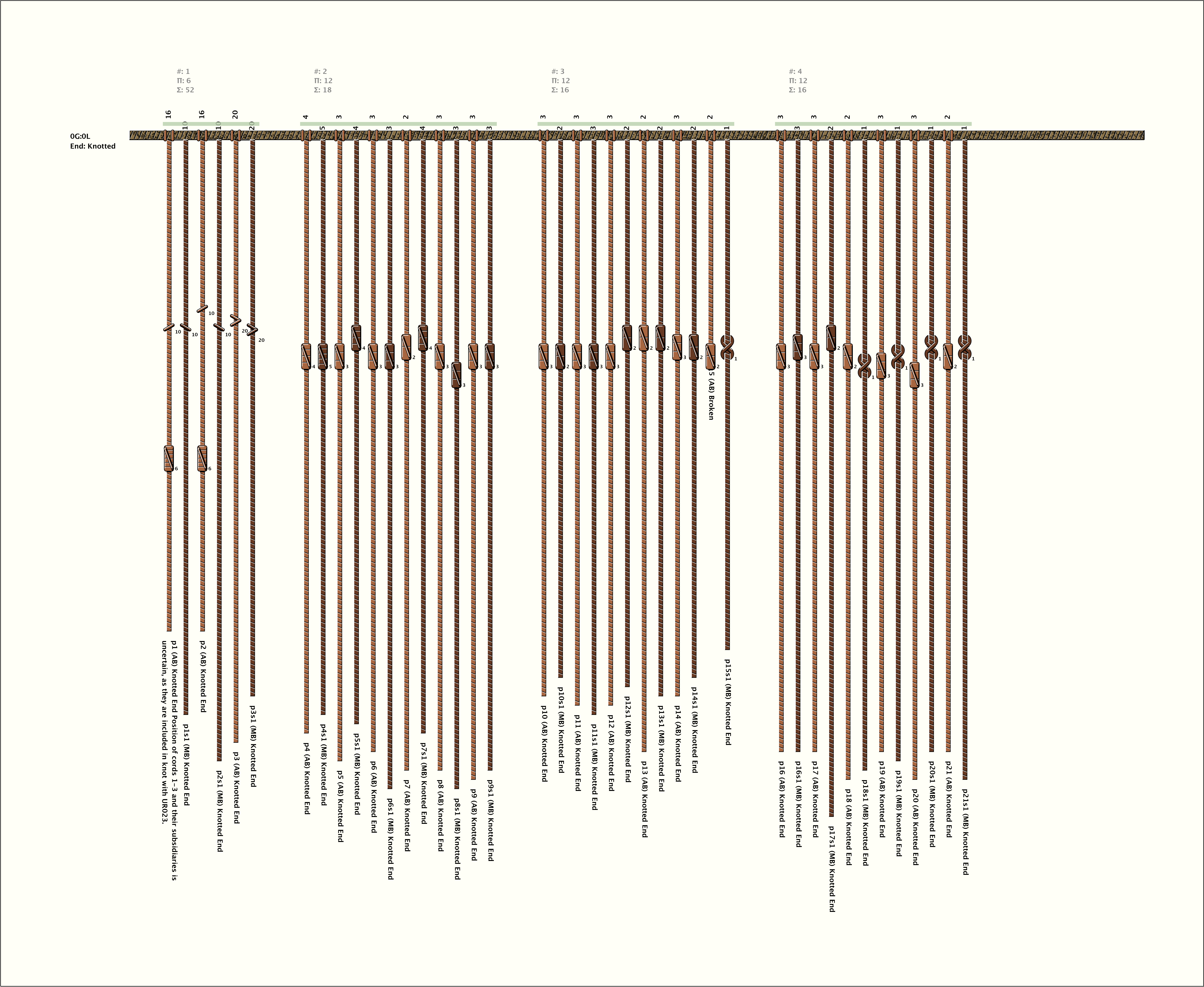 Total Number of Cords: 42 Number of Ascher Cord Colors: 3 Similar Khipu: Previous (UR130) Next (UR023) Catalog: UR057 Khipu Notes: Khipu Notes |