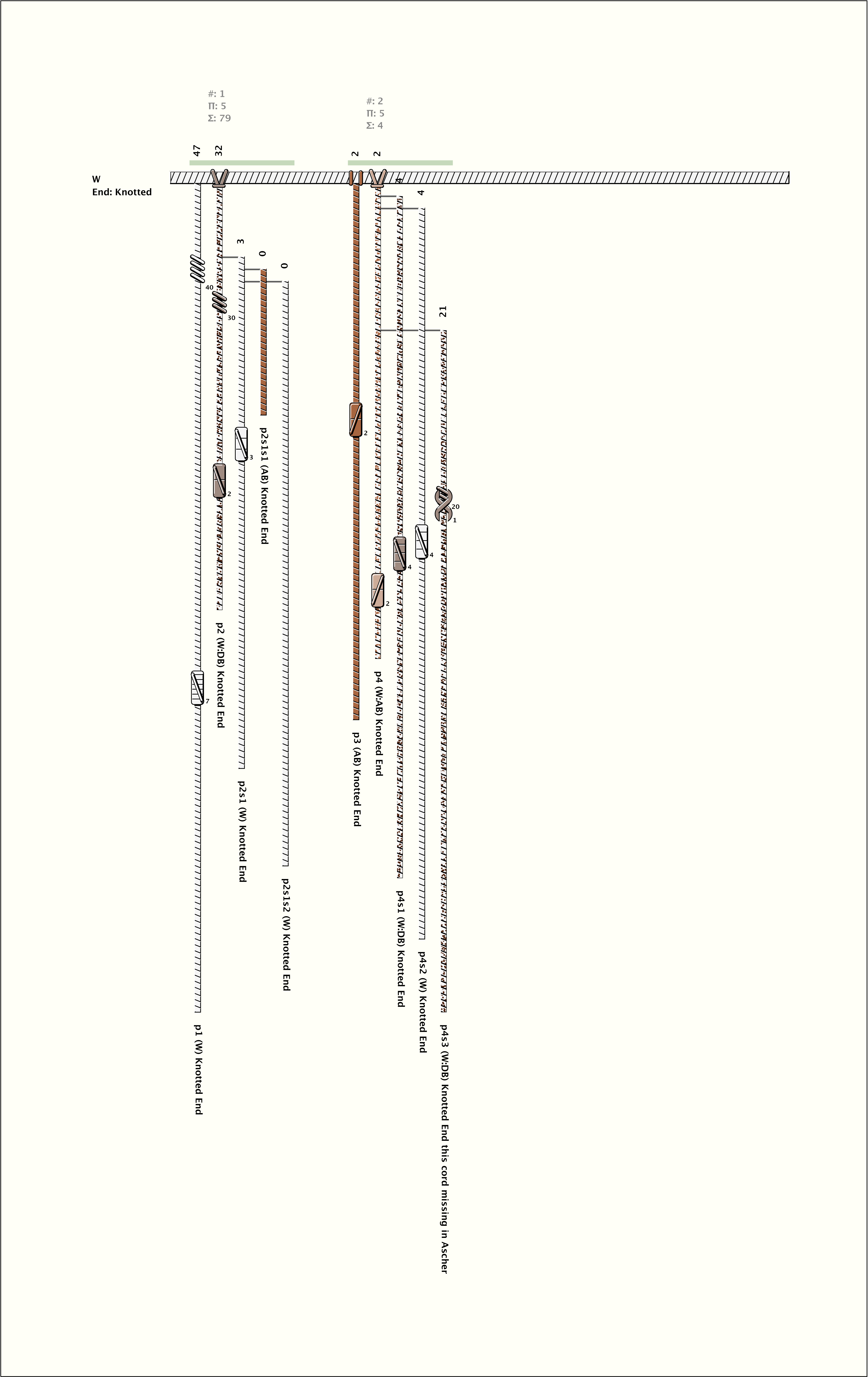 Total Number of Cords: 10 Number of Ascher Cord Colors: 4 Similar Khipu: Previous (UR013) Next (HP016) Catalog: UR1033E Khipu Notes: Khipu Notes |