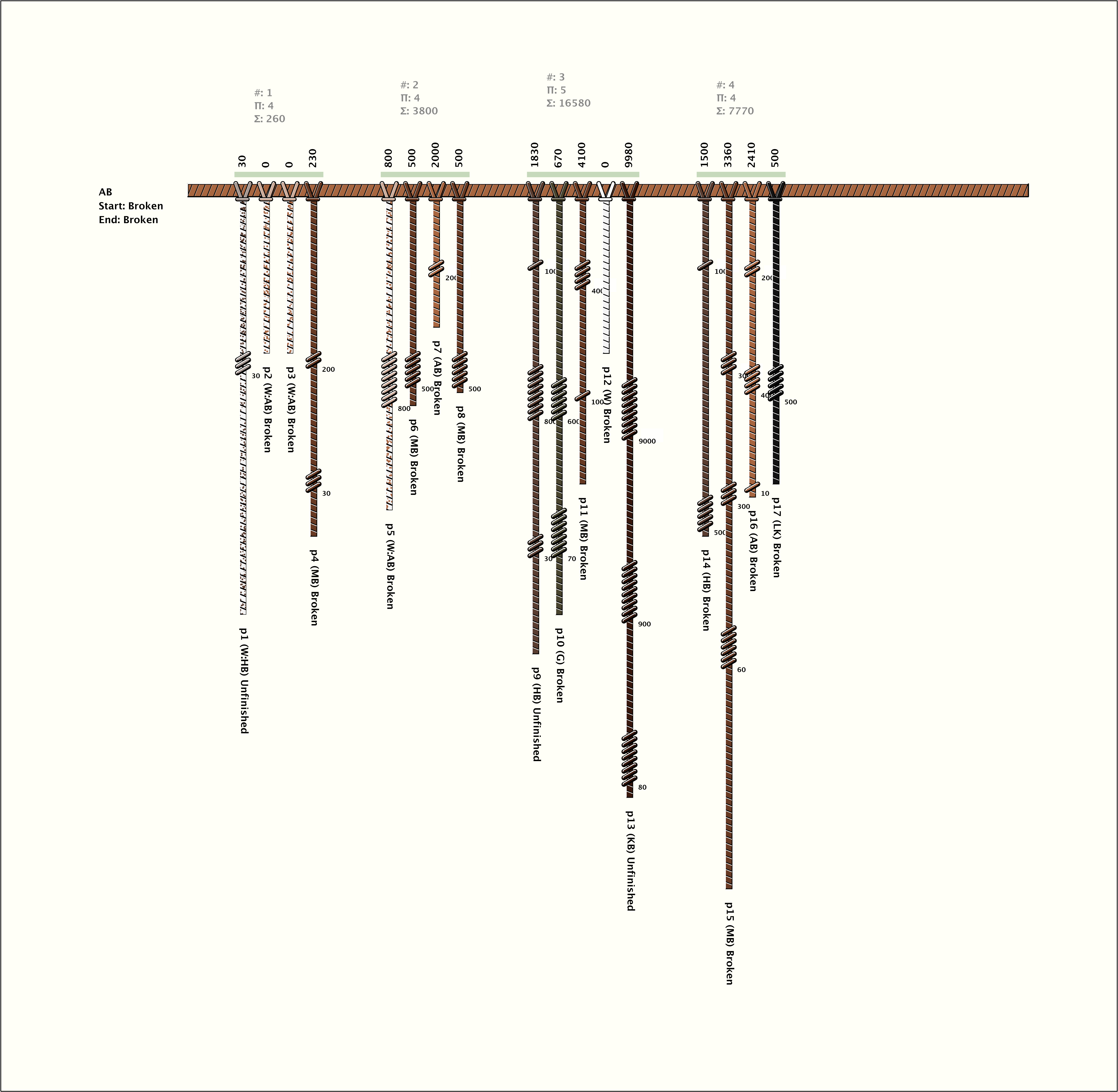Total Number of Cords: 17 Number of Ascher Cord Colors: 9 Similar Khipu: Previous (UR154) Next (HP021) Catalog: UR162 Khipu Notes: |